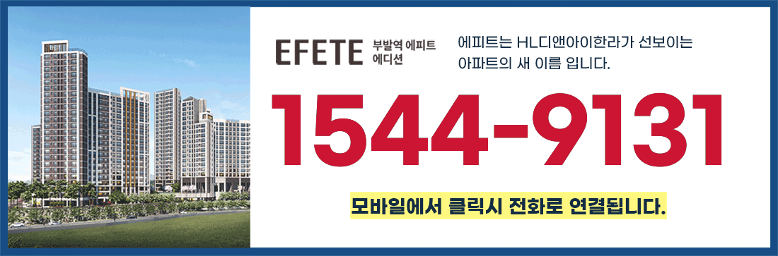 도시의 축이 움직인다이천의 세대 교체 부발역 에피트 에디션1544-9131방문예약 이천 부발역 에피트 에디션에피트는 HL디앤아이한라가 선보이는아파트의 새 이름 입니다. 사업개요 ▶ 입지환경 ▶ 프리미엄 ▶ 단지안내 ▶ 평면안내 ▶ 방문예약 ▶ ʻEveryone’s Favorite, Complete’에서 시작된모두가 선호하는 완벽함으로, 원하는 삶을온전히 만족시킨다는 의미를 담고 있습니다. 이천 부발역 에피트 에디션 계약금 1,000만원으로 입주시까지모델하우스 방문은 사전예약후 방문해 주세요 1544-9131 방문예약